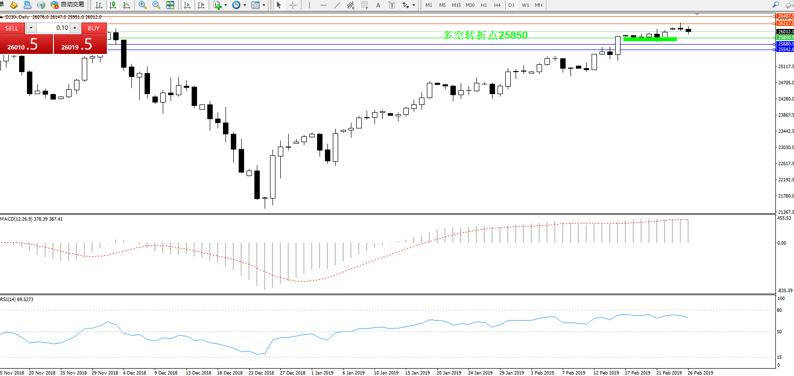美国股市三大股指周二收盘小跌,盘中交投震荡,因投资者关注良莠不齐的经济数据和企业消息,许多人保持观望态度,等待诸如中美贸易谈判等问题明朗化。道琼斯工业平均指数收跌33.97点,跌幅0.13%,报26057.98点。鲍威尔证词总结:显示:美联储能在货币政策问题上保持耐心。估计美联储未来储备的合理起点是大约1万亿美元加上缓冲资金。拒绝置评耶伦对特朗普“不懂美联储,也不懂经济政策”的评价。对于油价驱动型通胀而言,美国石油产业是一个有效的冲击减震器;美国经济存在相互冲突的信号。在贸易和其他政策上提供确定性具有重要意义。如果不能上调债务上限,将造成不确定性。美国本土经济形势向好,提及全球经济增速放缓和英国脱欧等因素。美国银行系统相当强劲。