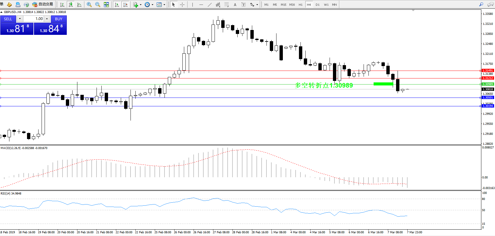 交易策略:1.30989下方看跌,目标1.305011.30194