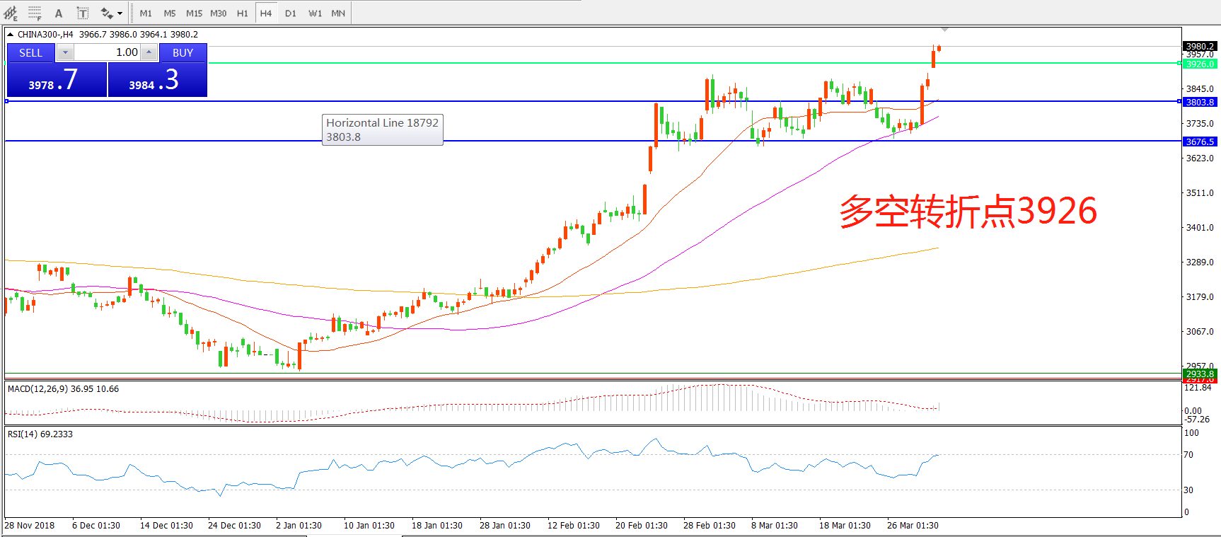 中华指数CHINA3004小时图