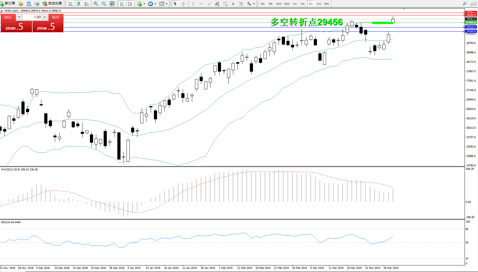 交易策略:29456上方看涨,目标29699、29784