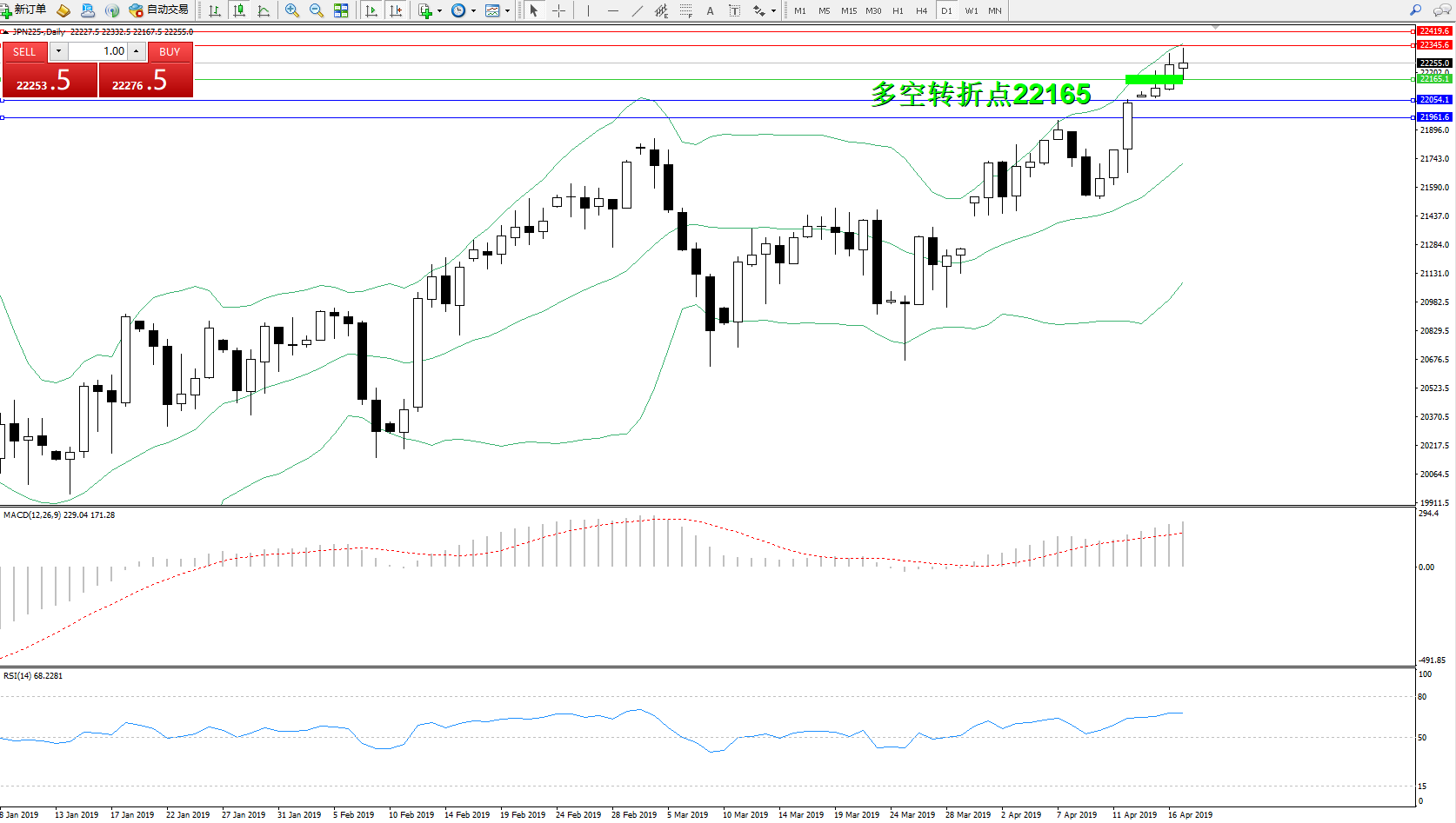 交易策略:22165上方看涨,目标22345、22419