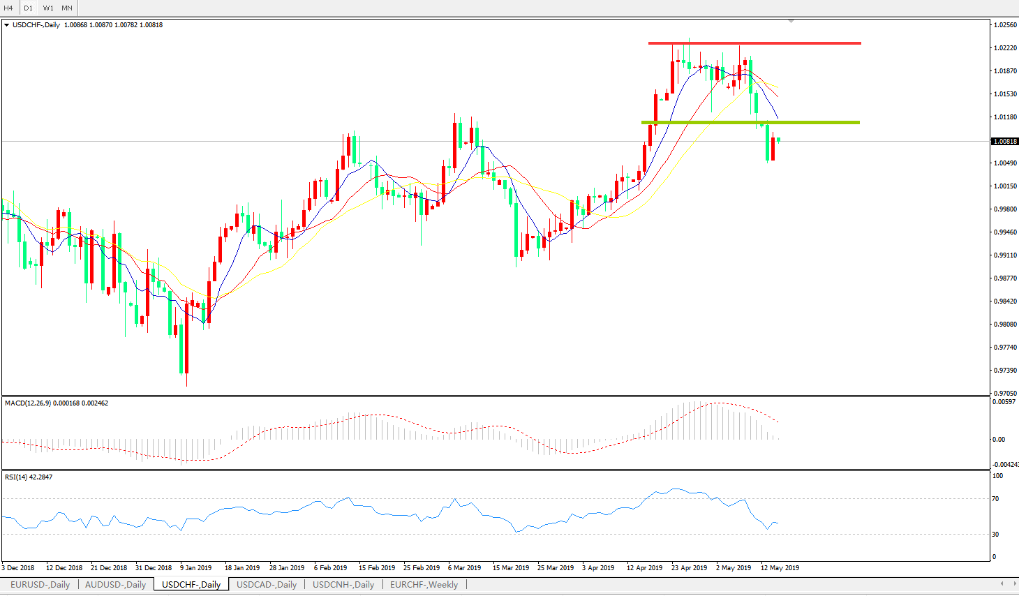 美元兑瑞郎USDCHF 日线图: