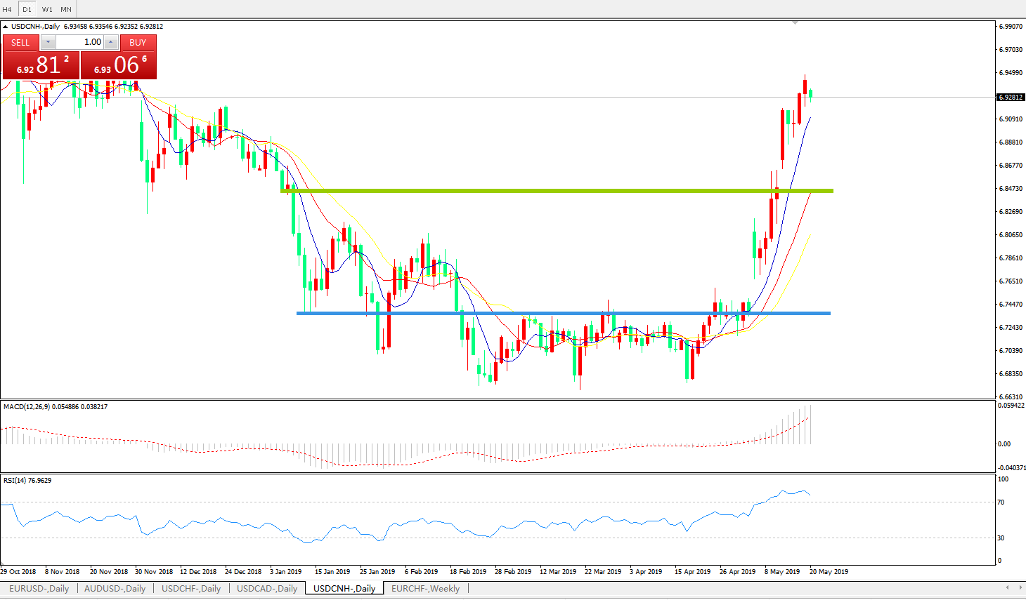 交易策略: 在6.8450之上,看涨,目标价位为6.9200,然后为6.9400。
