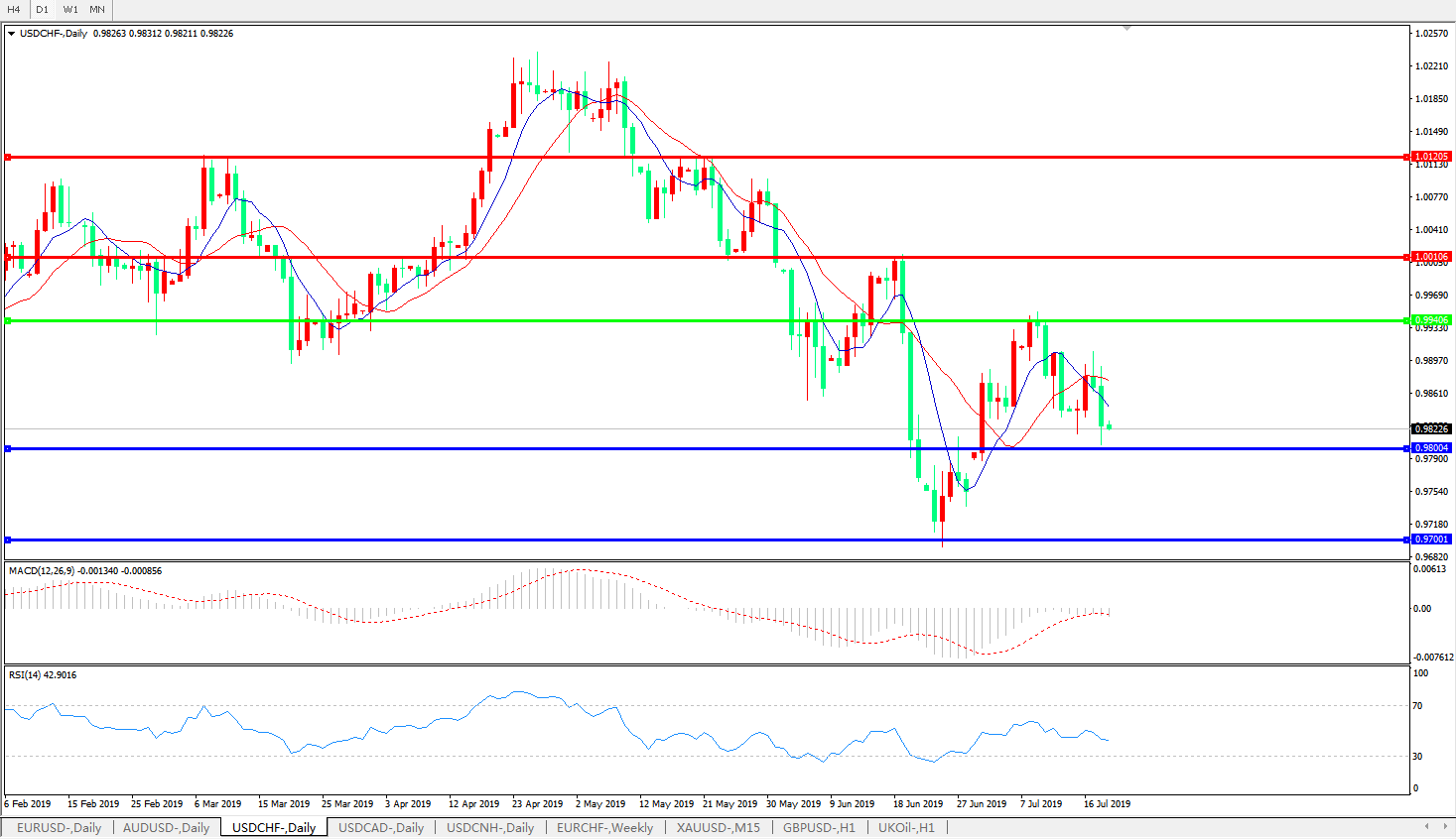 支撑位:0.9800、0.9700