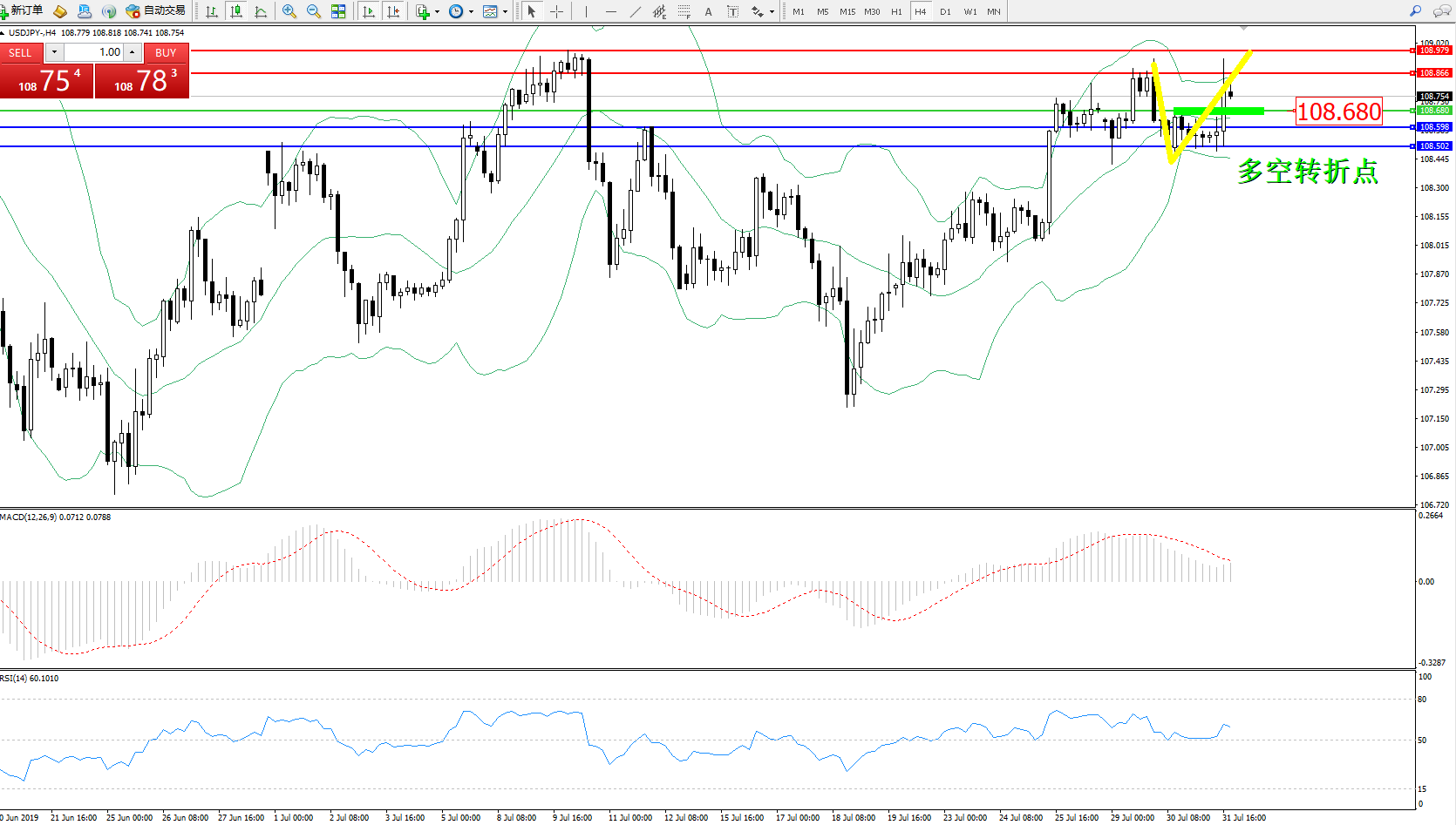 多空转折点:108.680
