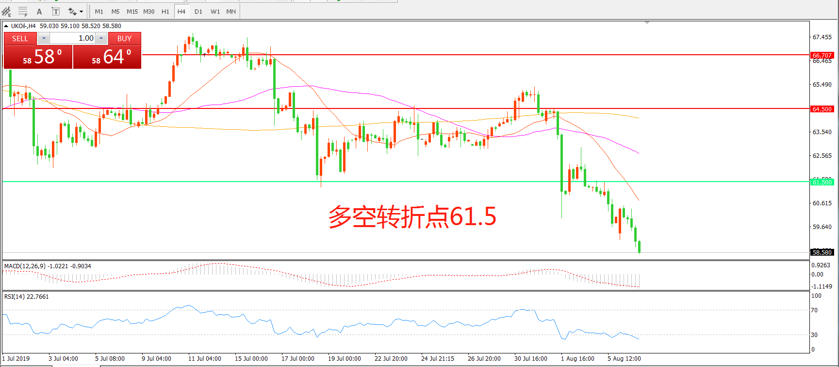 多空转折点:61.50