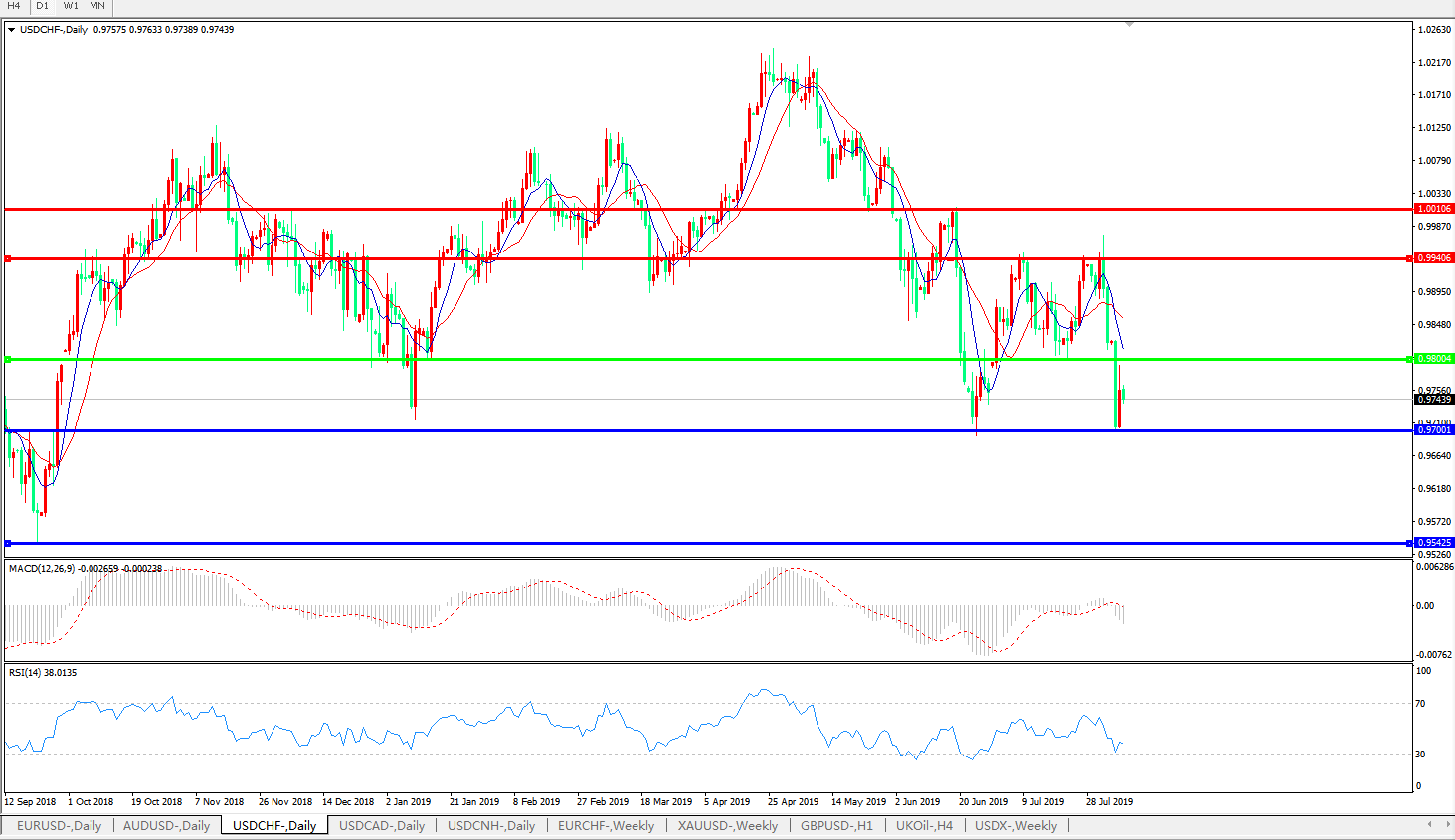 美元兑瑞郎USDCHF 日线图: