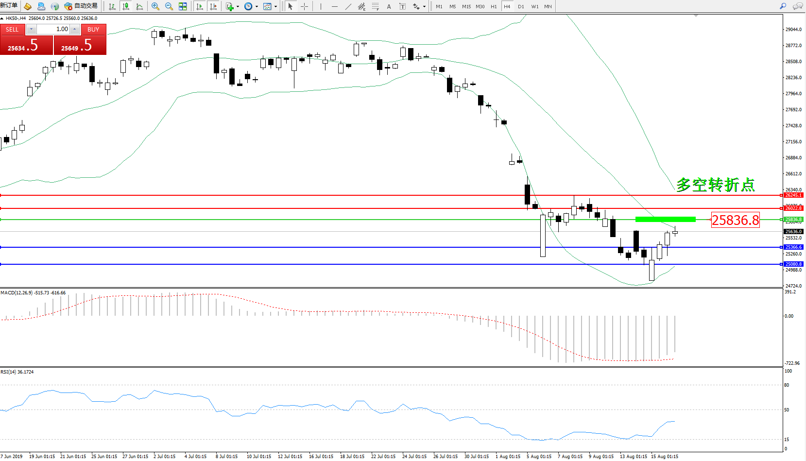 恒指HK50 ——4小时K线图显示:
