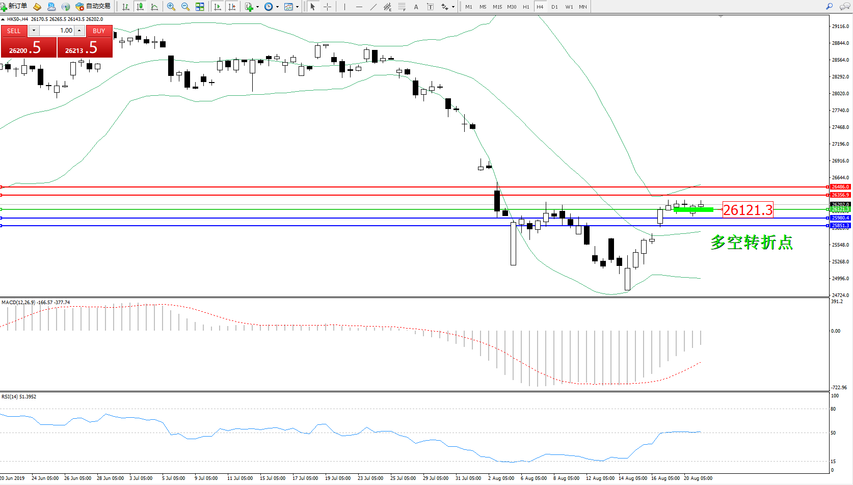 恒指HK50 ——4小时K线图显示: