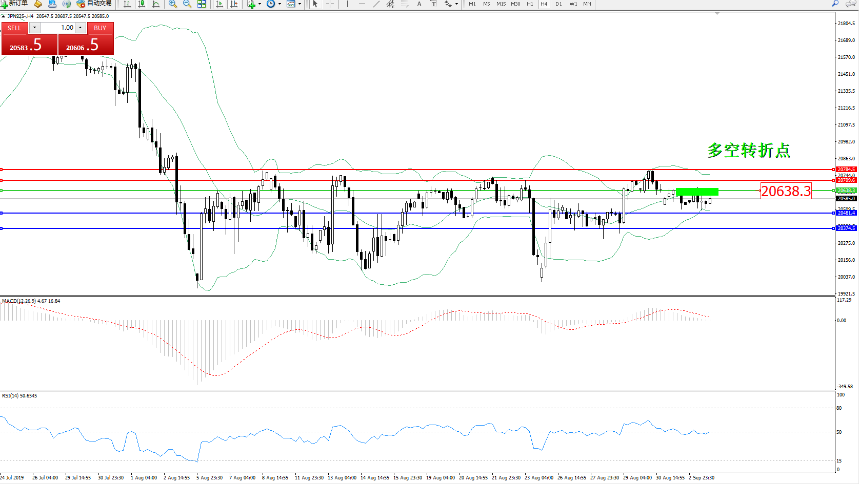 日经指数JPN225——4小时K线图: