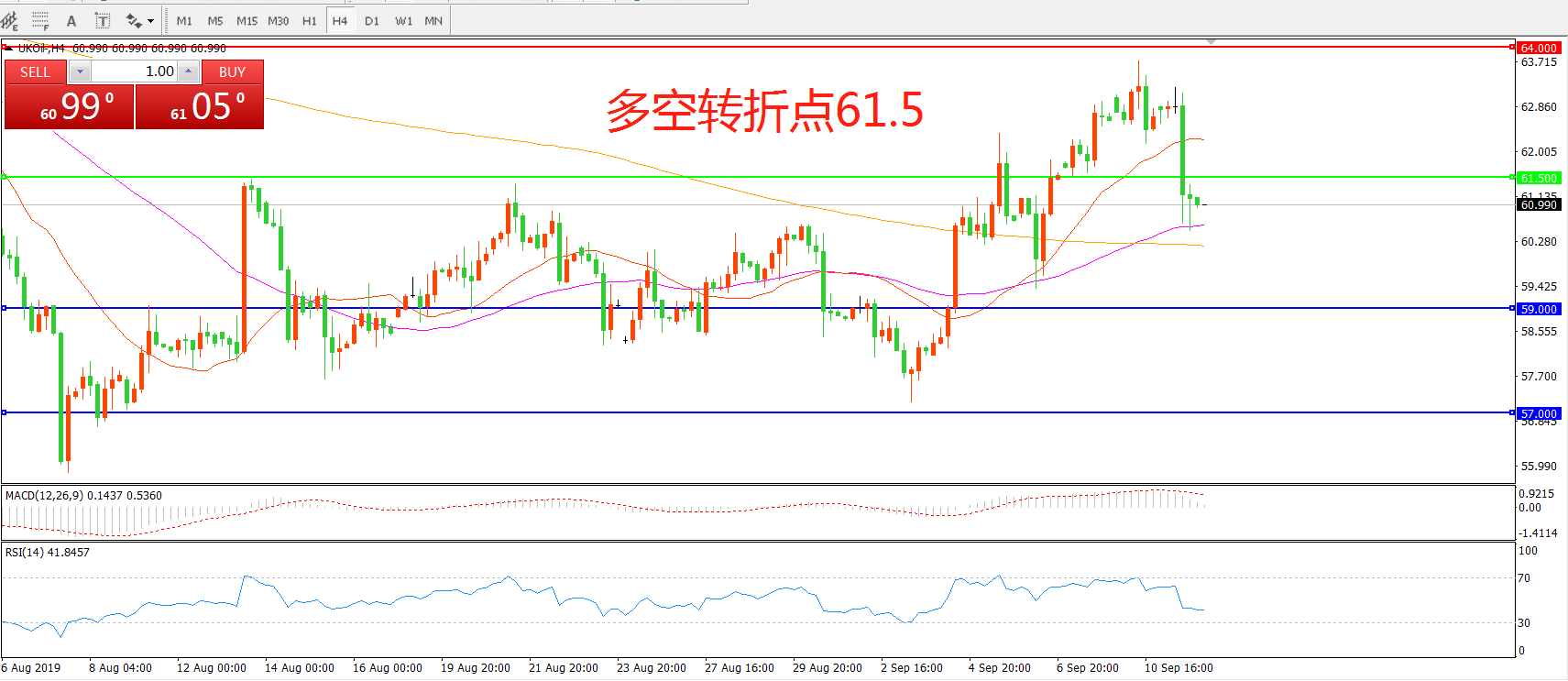 多空转折点:61.50