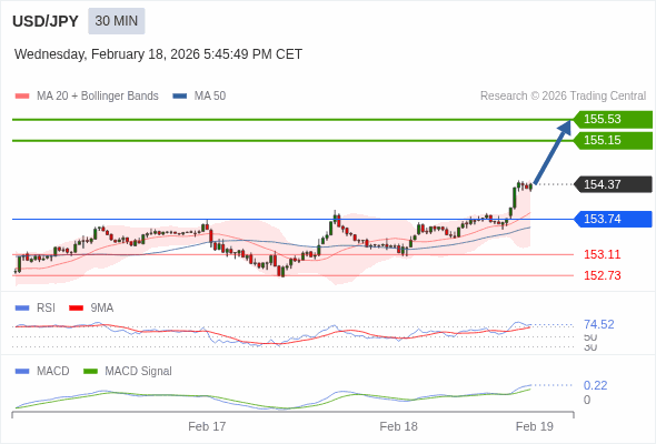 替代方案: 在153.74以下,期待153.11和152.73。