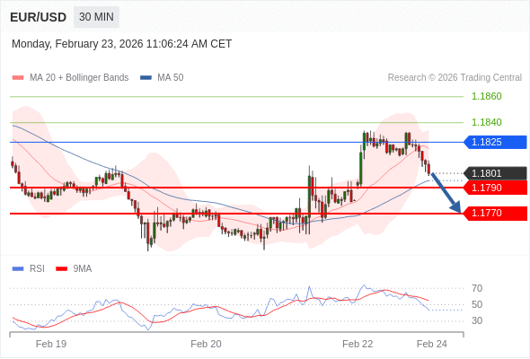 交易策略: 在 1.1825 之下,看跌,目标价位为 1.1790 ,然后为 1.1770 。