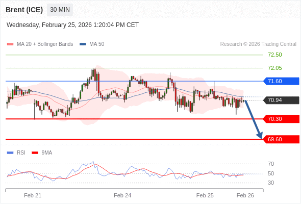 在 71.60 之下,看跌,目标价位为 70.30 ,然后为 69.60 。