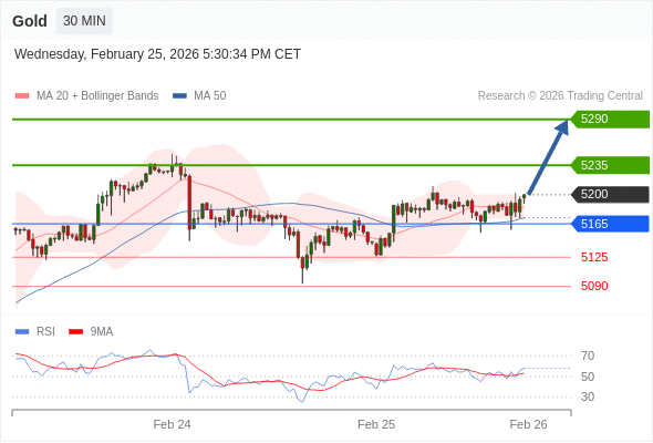 在 5165 之上,看涨,目标价位为 5235 ,然后为 5290 。