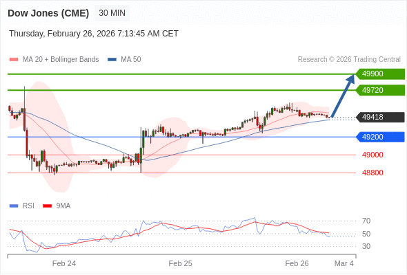 在 49200 之上,看涨,目标价位为 49720 ,然后为 49900 。