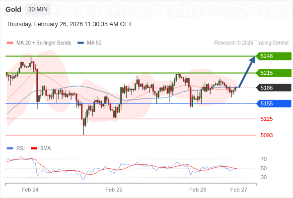 在 5155 之上,看涨,目标价位为 5215 ,然后为 5248 。