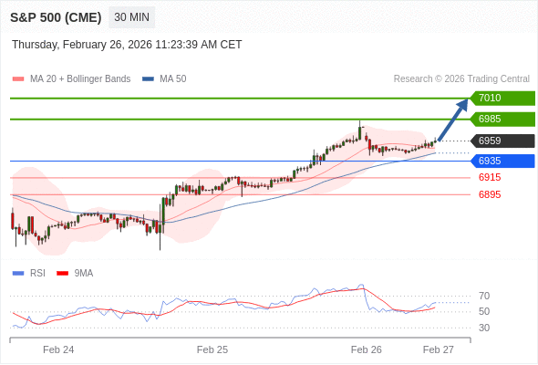 在 6935 之上,看涨,目标价位为 6985 ,然后为 7010 。