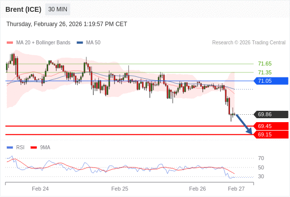 在 71.05 之下,看跌,目标价位为 69.45 ,然后为 69.15 。