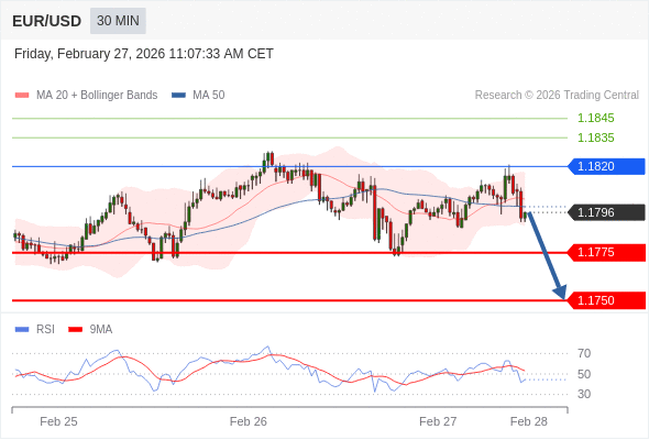 在 1.1820 之下,看跌,目标价位为 1.1775 ,然后为 1.1750 。