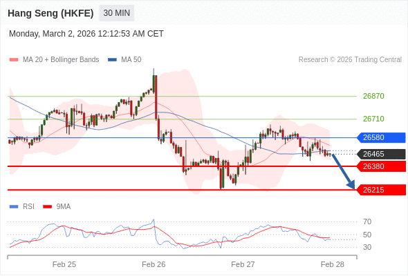 在 26580 之下,看跌,目标价位为 26380 ,然后为 26215 。