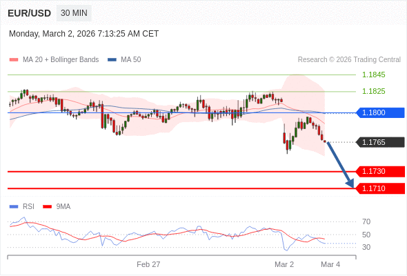 交易策略: 在 1.1800 之下,看跌,目标价位为 1.1730 ,然后为 1.1710 。