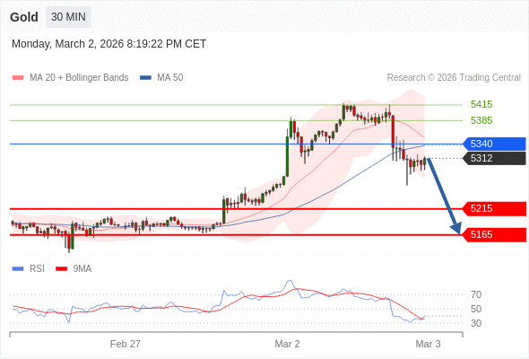 在 5340 之下,看跌,目标价位为 5215 ,然后为 5165 。