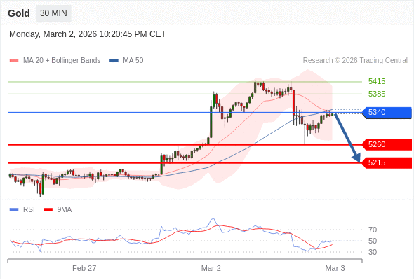在 5340 之下,看跌,目标价位为 5260 ,然后为 5215 。
