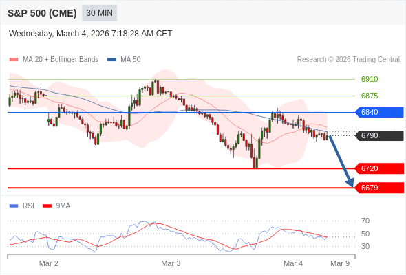 美国标普500指数期货 (H6) 当日内: 目标位为6720。