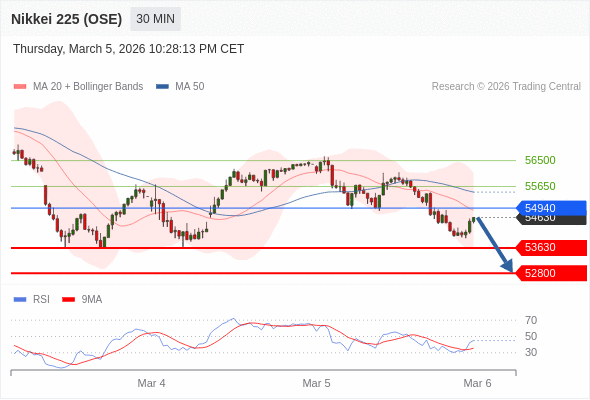 在 54940 之下,看跌,目标价位为 53630 ,然后为 52800 。