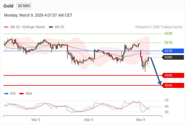 在 5130 之下,看跌,目标价位为 4995 ,然后为 4940 。