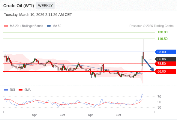 交易策略: 在 98.00 之下,看跌,目标价位为 78.50 ,然后为 66.00 。
