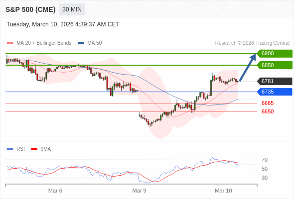 在 6735 之上,看涨,目标价位为 6850 ,然后为 6900 。