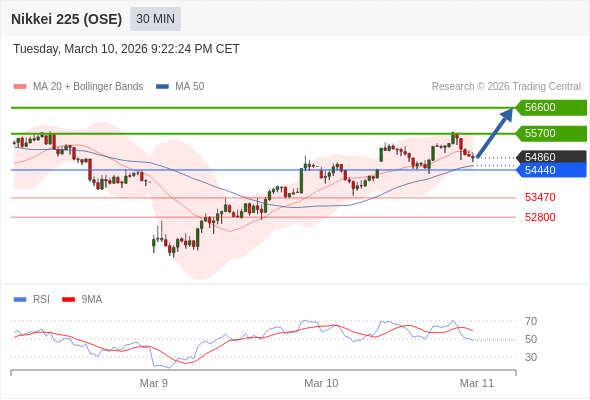 在 54440 之上,看涨,目标价位为 55700 ,然后为 56600 。
