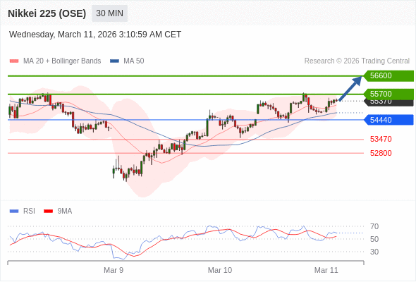 在 54440 之上,看涨,目标价位为 55700 ,然后为 56600 。