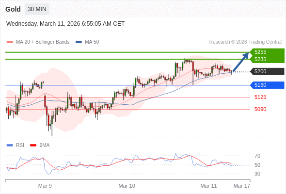 在 5160 之上,看涨,目标价位为 5235 ,然后为 5255 。