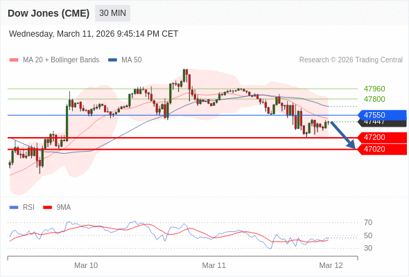在 47550 之下,看跌,目标价位为 47200 ,然后为 47020 。