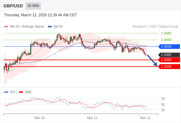 交易策略: 在 1.3420 之下,看跌,目标价位为 1.3360 ,然后为 1.3330 。