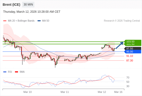 在 95.00 之上,看涨,目标价位为 101.50 ,然后为 103.50 。