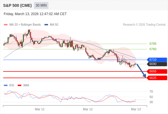 在 6710 之下,看跌,目标价位为 6655 ,然后为 6625 。