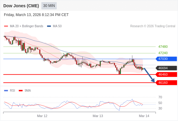 在 47030 之下,看跌,目标价位为 46460 ,然后为 46160 。
