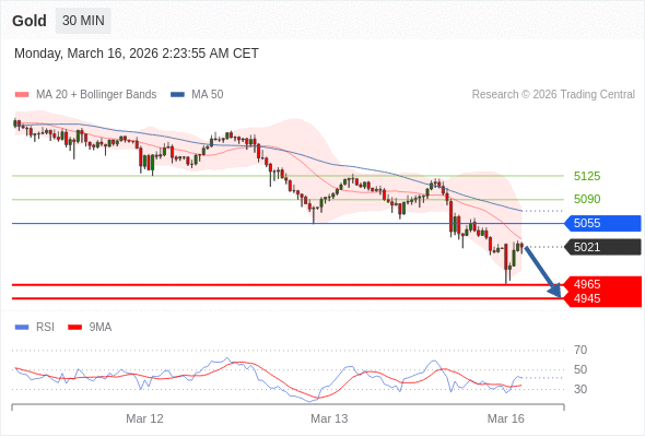 在 5055 之下,看跌,目标价位为 4965 ,然后为 4945 。