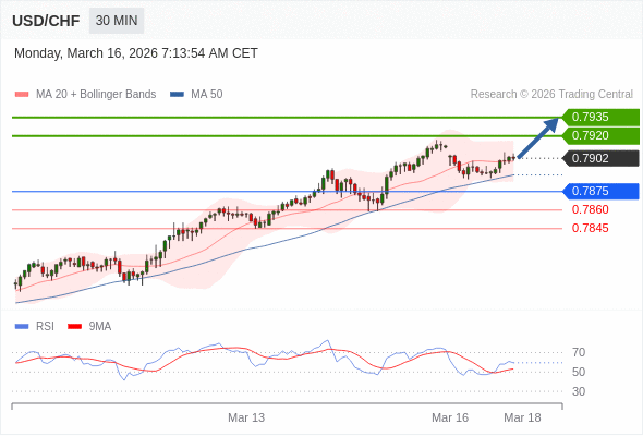 在 0.7875 之上,看涨,目标价位为 0.7920 ,然后为 0.7935 。