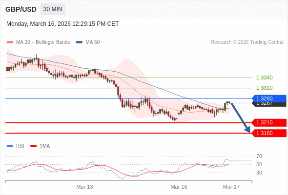 在 1.3280 之下,看跌,目标价位为 1.3210 ,然后为 1.3180 。
