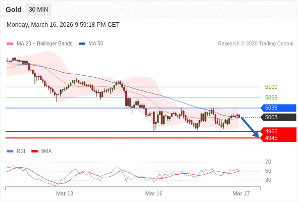 在 5036 之下,看跌,目标价位为 4965 ,然后为 4945 。