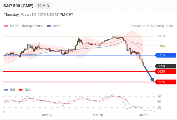 在 6715 之下,看跌,目标价位为 6630 ,然后为 6575 。