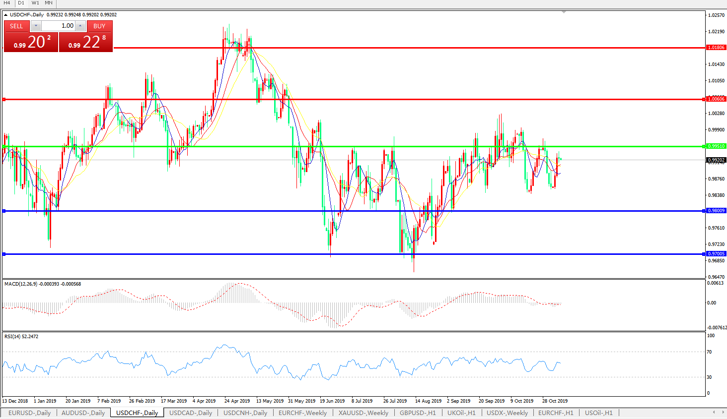交易策略:0.9950下方看跌,目标0.9800、0.9700