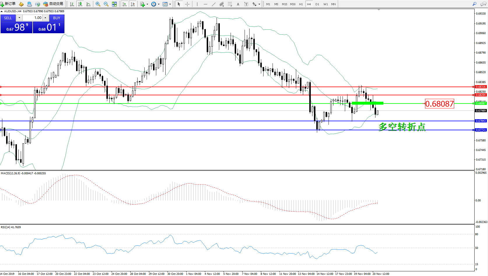 备选策略:0.68087上方看涨,目标0.68204、0.68316