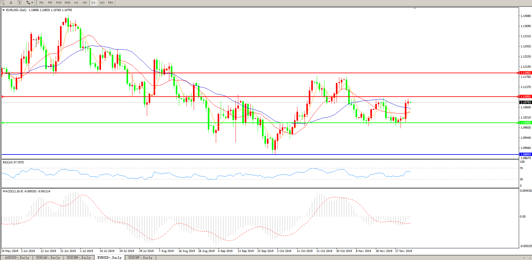 交易策略:1.1000上方看涨,目标1.1100、1.1190
