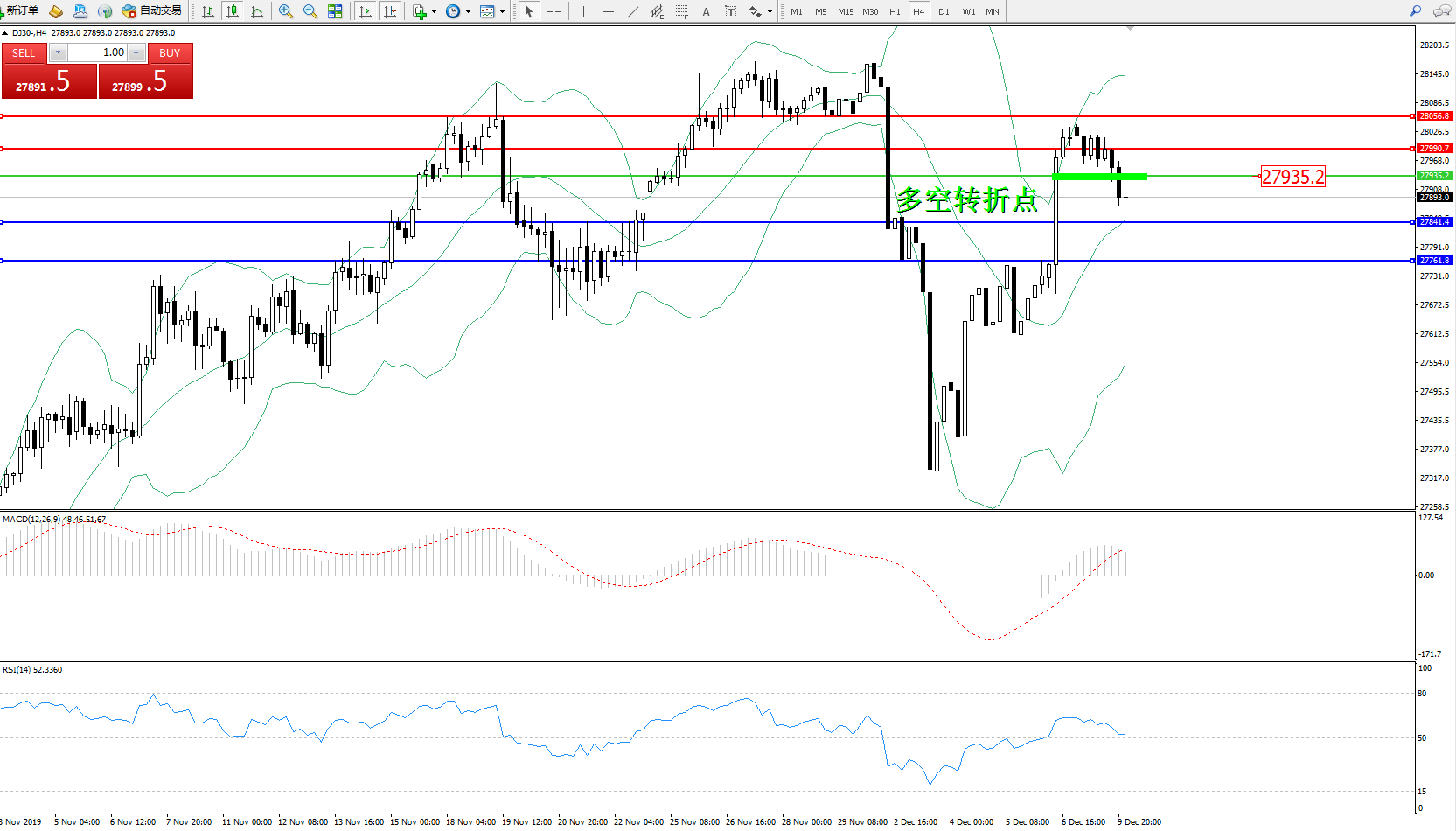 交易策略:27935下方看跌,目标27841、27761